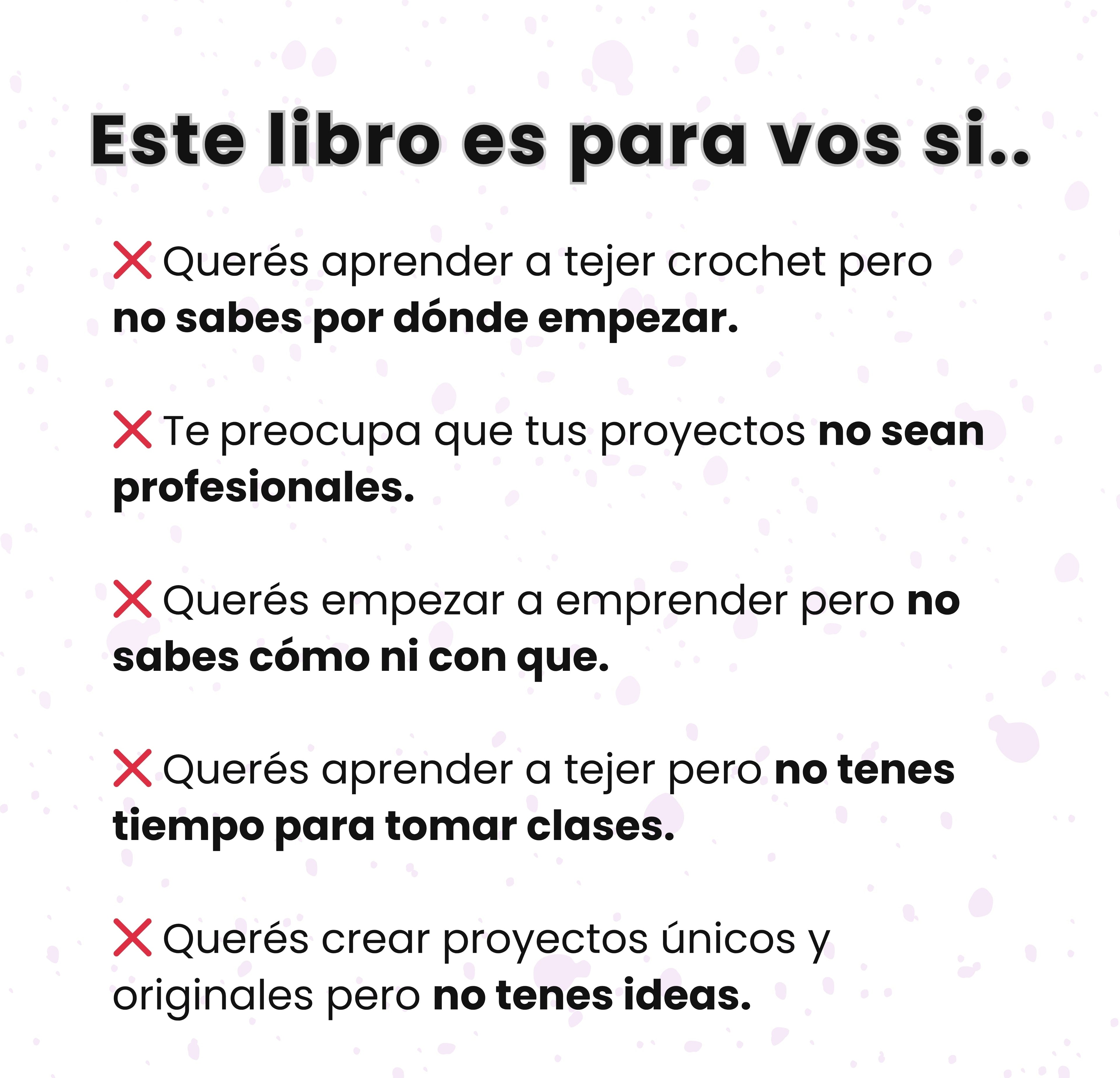 🧶 Probá el libro sin miedo: si en 7 días no sentís que te inspira, te simplifica el proceso y te ayuda a crear proyectos hermosos en menos tiempo, escribinos y te devolvemos el 100%.